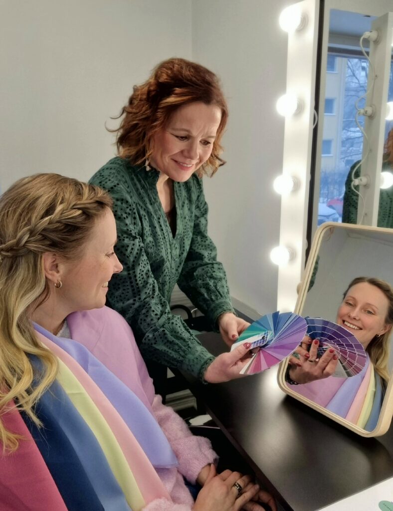 Värianalyysi sopii hyvin osaksi erilaisia tapahtumia, tiimipäiviä tai virkistyspäivien ohjelmaksi. Voin tehdä tarpeidenne mukaan erilaisia väripalveluja valitsemassanne kohteessa. Laita viestiä, niin suunnitellaan yhdessä teille sopiva väripalvelukokonaisuus.